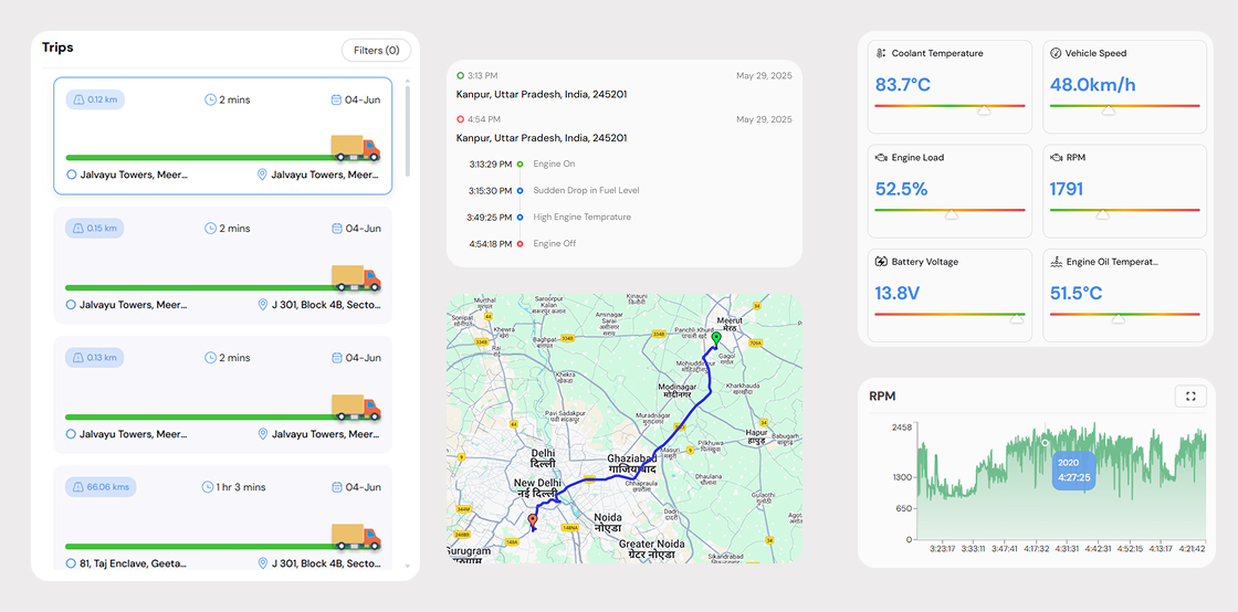 Revisit every trip with a detailed, interactive route replay — know exactly where, when, and how your vehicle moved.